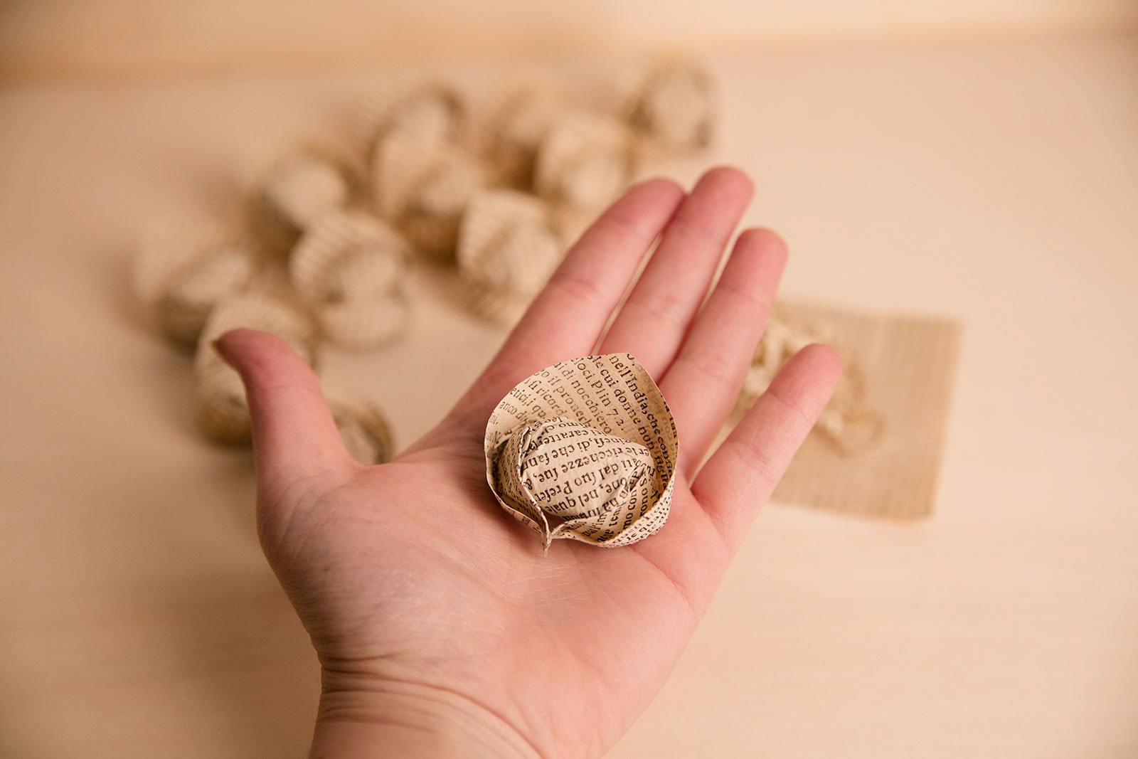 Handmade paper tortellini for History Channel Italy commercial.